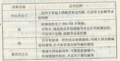 下表列出的常用襯里材料的性能、適用液體及工作溫度,可供選用時參考。