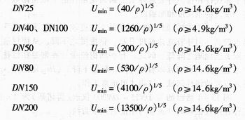 對于氣體和蒸汽,不同公稱通徑最低流速的經驗公式如下: