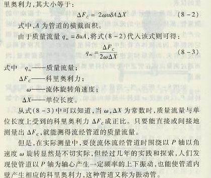 其質(zhì)量和運(yùn)動(dòng)速度有關(guān),而質(zhì)量和流速的乘積就是需要測(cè)量的質(zhì)量流量,因而通過測(cè)量流體在管道中受到的科里奧利力